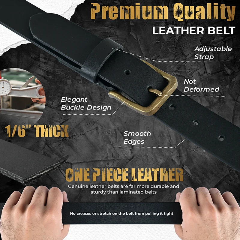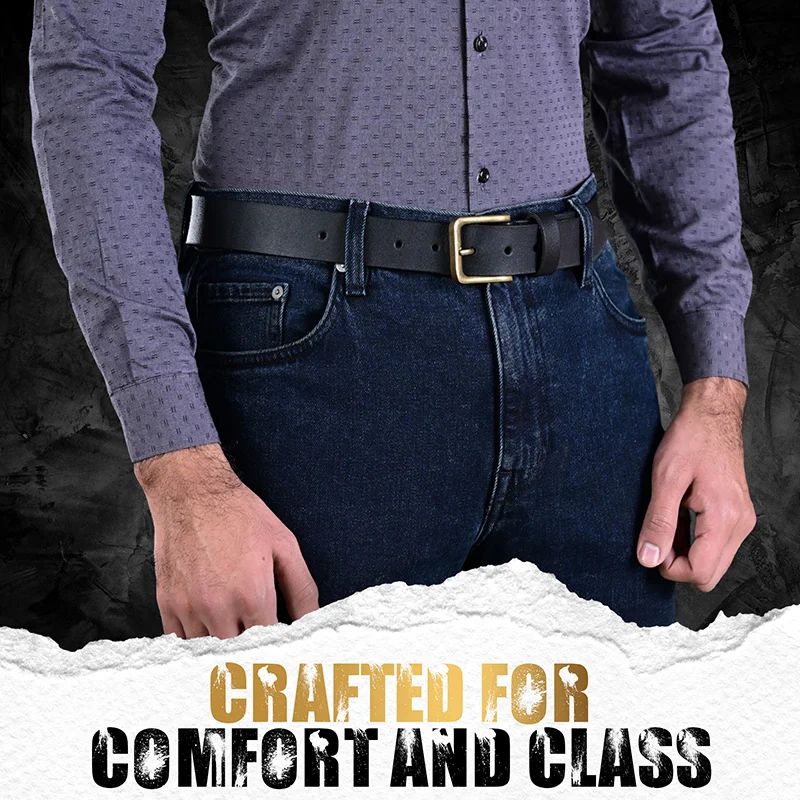 Experience the perfect blend of durability, style, and comfort with our Premium Top-Grain Leather Belt. Crafted from solid one-piece top-grain cowhide leather, this black leather belt with an antique buckle is built to withstand everyday wear while maintaining a sleek, refined appearance. Whether dressing up for a formal event or opting for a laid-back, casual look, this belt is the go-to accessory for any occasion.
