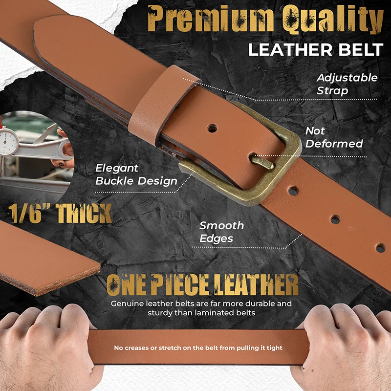 Experience the perfect blend of durability, style, and comfort with our Premium Top-Grain Leather Belt. Crafted from solid one-piece top-grain cowhide leather, this tan leather belt with an antique buckle is built to withstand everyday wear while maintaining a sleek, refined appearance. Whether dressing up for a formal event or opting for a laid-back, casual look, this belt is the go-to accessory for any occasion.